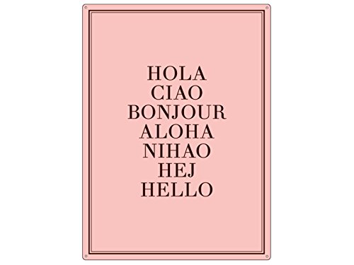 Wandschild Metallschild Hola Ciao Rosa Pastell Willkommen Flur