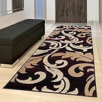 Amazon De Tapiso Dunkelbraun Beige Flur Deko Laufer Mit Rosette