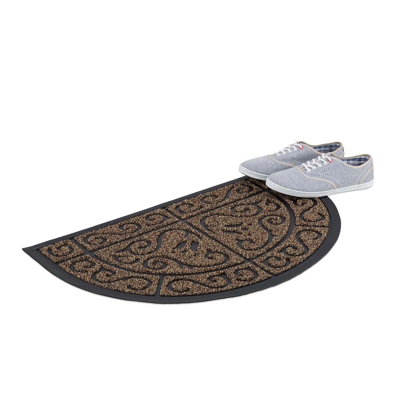 Relaxdays Fussmatte Halbrund Gummi Braun Schmutzfangmatte 50x80 Cm