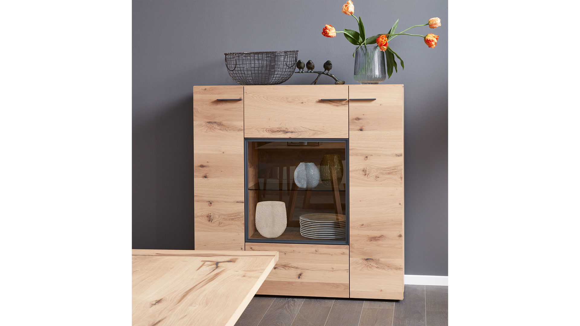 Highboard Vitrine Wildeiche Teilmassiv Zemina2 Designermobel