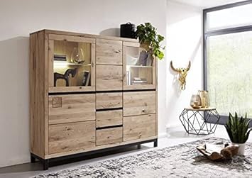 Highboard Vitrine Kiroyal Wildeiche Massiv Geolt Amazon De