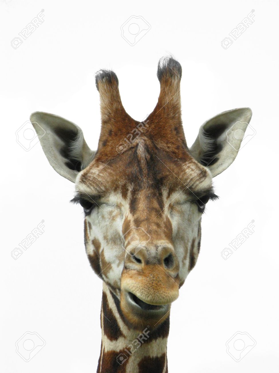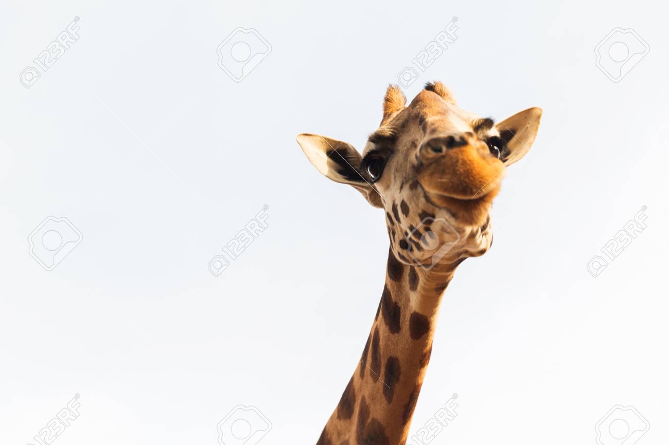 Giraffe Kopf Auf Weissem Hintergrund Lizenzfreie Fotos Bilder Und