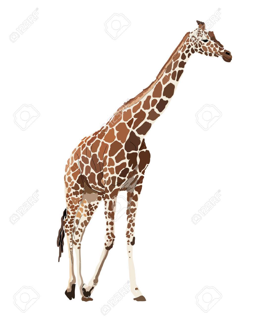 Giraffe Isoliert Auf Weissem Hintergrund Aquarell Bild