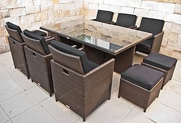 Rattan Gartenmobel Set Mit 8 Stuhlen Schwarz Esstisch Gartentisch
